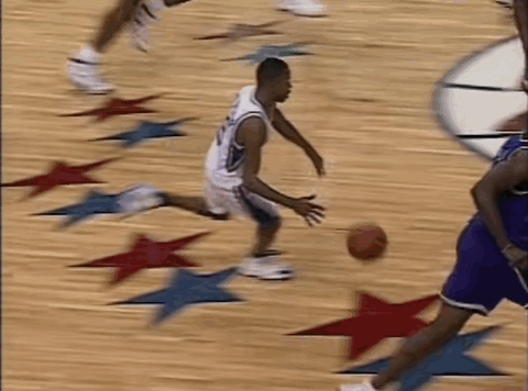 两幕插曲或许点燃了他的斗志:先是同届选秀的5号秀雷-阿伦在他头上投进了生涯首分,“君子雷”在转换中找到了艾弗森,一记突破后的背后运球把他晃了个趔趄,然后稳稳投进了大空位中投;紧接着,杰里-斯塔克豪斯很快还以颜色,他接球后以迅雷之势摆脱阿伦,上演了一次十佳球级别的反身扣篮。